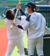 2013.04.19 17: 44민병헌-정수빈, '장난꾸러기 곰돌이들~'