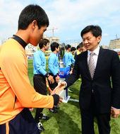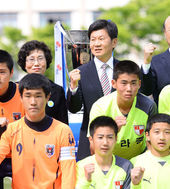 중등리그 개막전 찾은 정몽규 회장,'중등 축구 파이팅!'