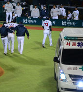 2013.04.19 21: 05'부상' 오재원, '앰뷸런스 대신 부축 받으며 더그아웃으로'