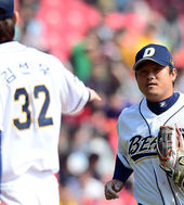 2013.04.21 15: 22김선우-손시헌,'오늘은 5연승 하는날'