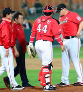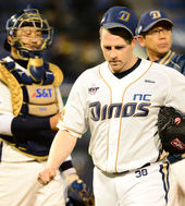 2013.04.24 20: 45투런포 맞고 마운드 내려가는 에릭,'뚜껑 열리네'