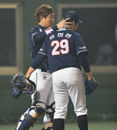 2013.04.25 23: 03양의지-유희관, '끝까지 잘 막았어!'