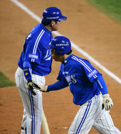 2013.04.25 19: 14이택근, '방망이 하이파이브(?)'