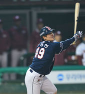 2013.04.25 19: 17민병헌, '오늘 맞으면 장타네!'