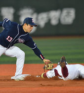 2013.04.25 19: 03손시헌, '서건창, 피치아웃 딱 걸렸어'