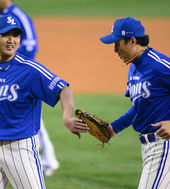 2013.04.25 19: 02장원삼, '승엽선배, 수비 덕분에 웃네'