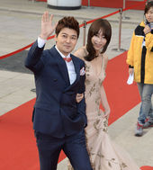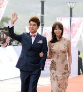 2013.04.25 18: 24다정하게 팔짱끼고 레드카펫 밟는 전현무와 강예원