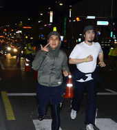 2013.04.26 23: 03횡단보도 신호기다리는 시민 호응 받으며 달리는 나이키 이태원 프리런 참가자