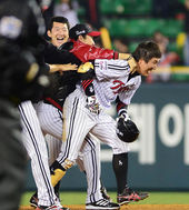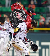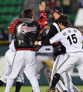 2013.04.26 22: 23'이진영 끝내기' 환호하는 LG 선수들