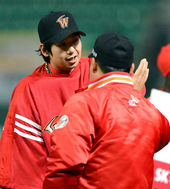2013.04.26 21: 50승엽-형우,'윤성환! 첫 완봉승 축하해'