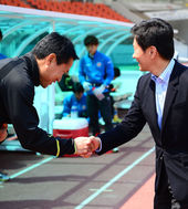 2013.04.27 15: 05안익수 감독과 악수를 나누는 정몽규 대한축구협회회장