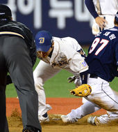 2013.04.27 20: 15황재균-김성배,'전날 패배 설욕했어!'