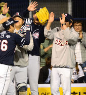 2013.04.27 20: 03박한이-배영섭,'글러브 속 글러브'