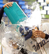 2013.05.01 21: 59물벼락 맞는 김태군, '기분은 최고'