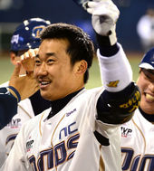 2013.05.01 19: 48솔로포 김민성,'오늘도 승리하자고~'