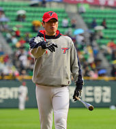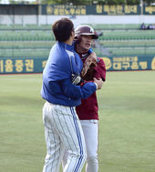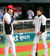 2013.05.01 17: 02방망이 든 서재응,'현진이도 안타 쳤다던데....'