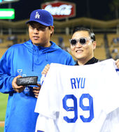 2013.05.01 15: 09류현진-싸이,'선글라스와 유니폼 맞교환! 우정인증!'