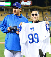 싸이,'류현진의 3승 축하하며 사인 선글라스 선물!'