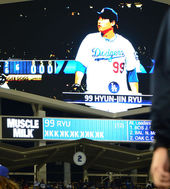 2013.05.01 13: 30류현진 응원하러 다저스타디움에 월드스타 싸이가 떴다!'