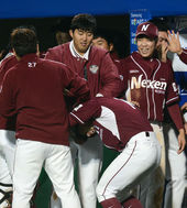 2013.05.02 23: 13기뻐하는 넥센 더그아웃,'삼성전 스윕이 보여'