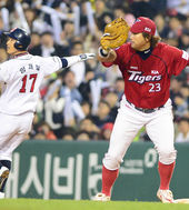 2013.05.02 19: 18최희섭-임재철,'세이프? 아웃?'