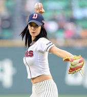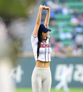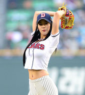 2013.05.03 18: 35클라라,'잠실구장 들썩인 섹시 S라인 시구'