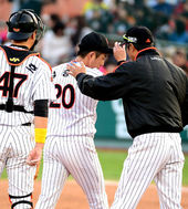 2013.05.04 18: 10유희관,'아웃타임 이었는데 아쉽네'
