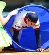 2013.05.05 13: 42유희관,'비닐랩이 뚫리지 않네'