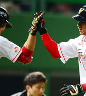 2013.05.07 22: 04이성열,'감독님과 승리의 하이파이브!'