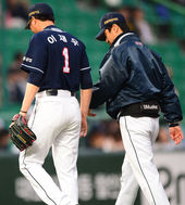 2013.05.07 19: 274실점 이재우, 2회에 팔꿈치 통증으로 강판