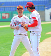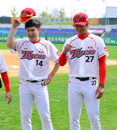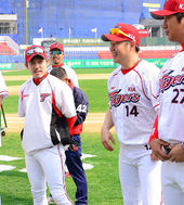 2013.05.07 15: 32호랑이 유니폼 입은 송은범-신승현,'우승하러 왔어요!'