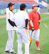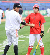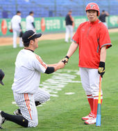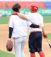 2013.05.09 16: 21동갑내기 김성배-이범호,'어제 사사구는 잊자고'