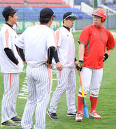 2013.05.09 16: 24손아섭-황재균,'지완아! 훈련 끝내고 빨리 들어가라~'