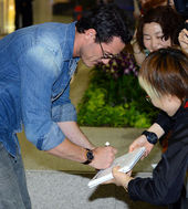 2013.05.10 16: 04허리숙여 태블릿PC에 사인하는 루크 에반스
