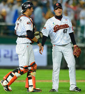 2013.05.11 20: 54김성배-강민호,'피말리는 9회였어'