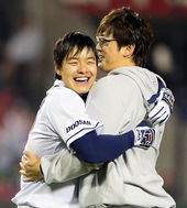 2013.05.11 20: 44민병헌-김선우,'승리의 포옹 와락'