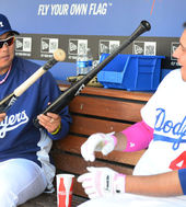 [사진'류현진 도우미' 슈마커, '오늘도 타격감 좋아요'