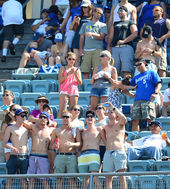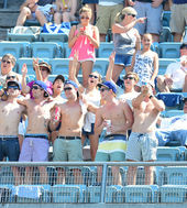윗옷 벗은 다저스 남성팬들, '더위 몰라요~'