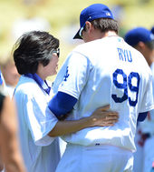 2013.05.13 05: 13류현진과 어머니, '메이저리그서 갖는 뜻깊은 시구행사'