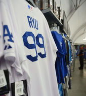 2013.05.14 10: 44다저스 팬샵에 진열된 '99번 류현진 유니폼'