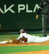 2013.05.15 20: 26김태균,'무리해서 2루까지 달렸지만 태그아웃!'