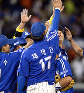 2013.05.17 20: 03기뻐하는 삼성 선수들,'우리에겐 연패는 없다'