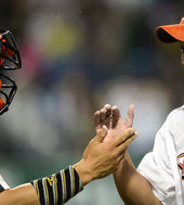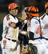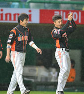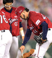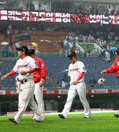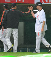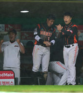 2013.05.18 20: 43옥스프링-김사율, '비 맞으며 기분 좋은 하이파이브'