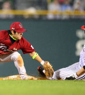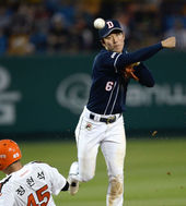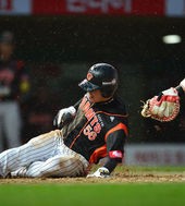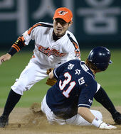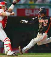 역전 득점 올리는 신본기, '태그를 살짝 피해'