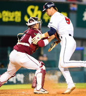 2013.05.21 20: 17허도환,'오재원을 홈에서 태그아웃시켜!'