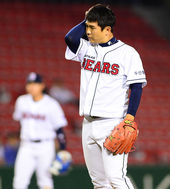 조상우,'파워 피칭에 모자가 얼굴을 가려!'
