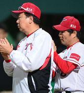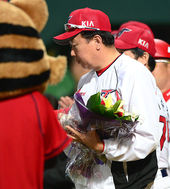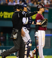 두번의 연속된 위협구로 퇴장을 명하는 강광회 구심