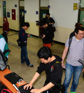 손호영 사건으로 강남경찰서 형사과 앞에서 대기하는 취재진들