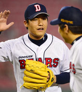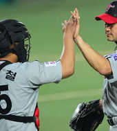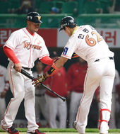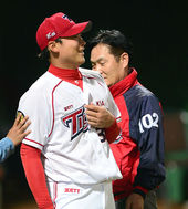 2013.05.23 21: 50하이파이브 나누는 주키치, '드디어 2승 거뒀어요'