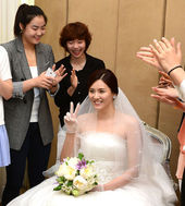 팀 동료들의 축하를 받는 '5월의 신부' 강영숙